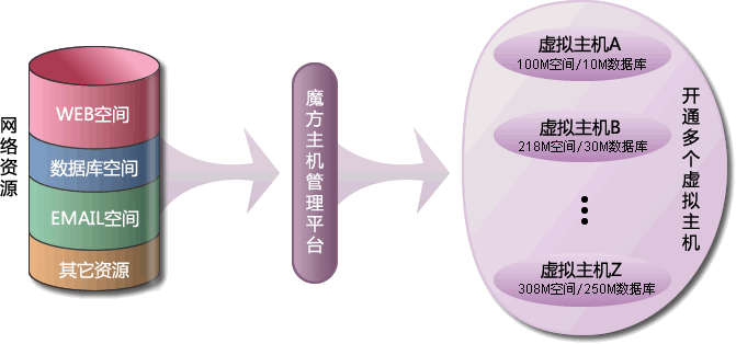魔方主机是新有科技在虚拟主机技术基础上,最近推出的一个主机新产品。简单的来说,魔方主机是一个虚拟主机合集产品,它只用一次购买网络资源(如WEB空间容量、IIS链数、数据库空间容量等),即可开通多个虚拟主机,并可随时自由分配每个虚拟主机的可用资源。